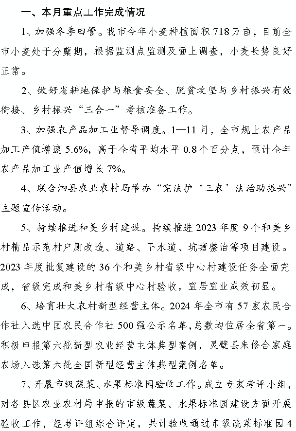 【工作总结及安排】12月重点工作完成情况及一月重点工作安排