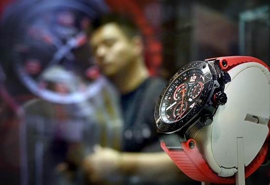 4月13日,消博会5号馆精品名表展示区一角。(王颂 摄)