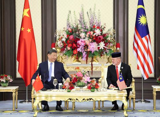 习近平指出,中国和马来西亚是好邻居、好朋友、好伙伴,常来常往、亲如一家。两国关系走过了波澜壮阔的半个世纪,正迎来更加美好的前景。我愿同易卜拉欣最高元首一道努力,引领中马关系长期稳定发展,共同打造高水平战略性中马命运共同体,谱写睦邻友好、团结合作新篇章,开启中马关系新的“黄金50年”。