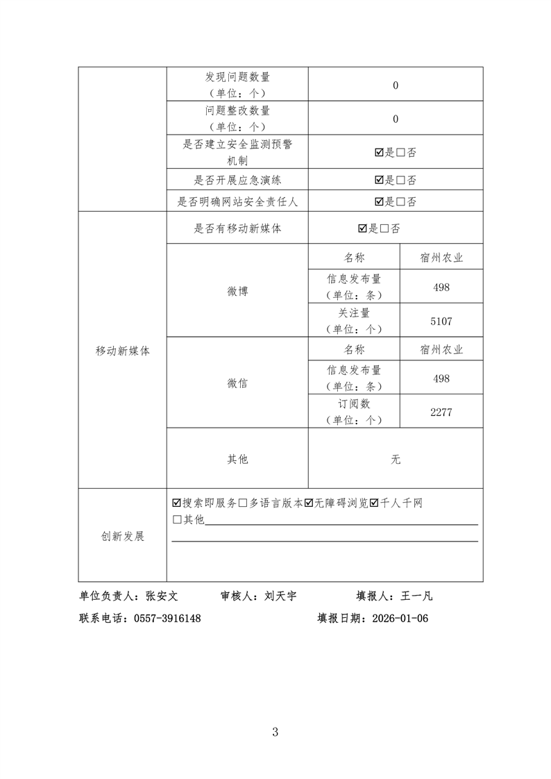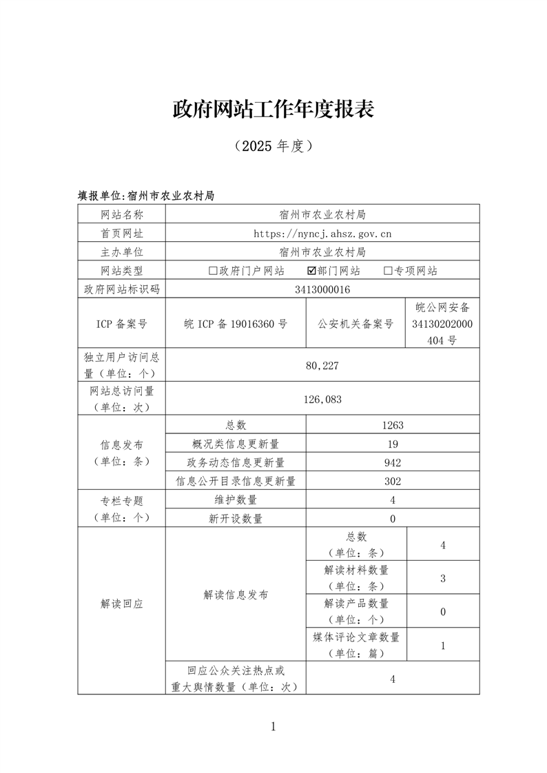 宿州市农业农村局2025年度政府网站工作报表